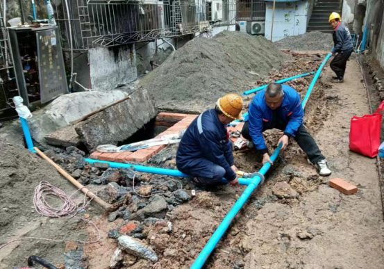 部分老城區的老舊管網,地埋管道漏損引發的跑水掉壓問題,嚴重影響了用戶的用水體驗;因年代久遠、地埋管道走向不明、地形地貌發生改變、違章建筑林立等原因導致維修困難或無法徹底修復,廣大用戶反映強烈。針對此類問題,為了精簡和加快改管流程,盡快解決用戶的燃眉之急,懷化市自來水有限公司對申報審批流程進行優化,通過減少辦理環節、縮減辦理時間、精簡申報材料、加快施工進度等措施,做到“能簡則簡、能少則少”。用戶(或相關部門)提交改管報告后,技術部門會第一時間勘察現場并出具施工方案,懷化水務億源維護分公司則迅速組織施工。整個改造過程用戶只須提交一份改管申請,其它諸如報告審批、勘察現場、改管施工等流程都由億源水務工作人員完成,由此提高群眾獲水辦理便利度,力求流程簡單、安裝迅速、水壓達標、服務貼心、群眾省心。