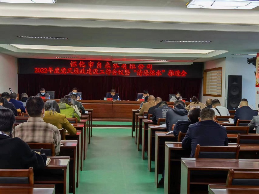 為深入推進黨風廉政建設和“清廉供水”建設工作,4月15日下午,懷化市水務集團自來水有限公司召開黨風廉政建設會議暨“清廉供水”推進會。該公司領導班子成員及中層管理人員參加會議,公司黨總支書記、總經理吳文星全面總結2021年黨風廉政建設工作開展情況,深刻分析當前的形勢任務,安排部署2022年工作任務,重點部署了“清廉供水”創建工作。