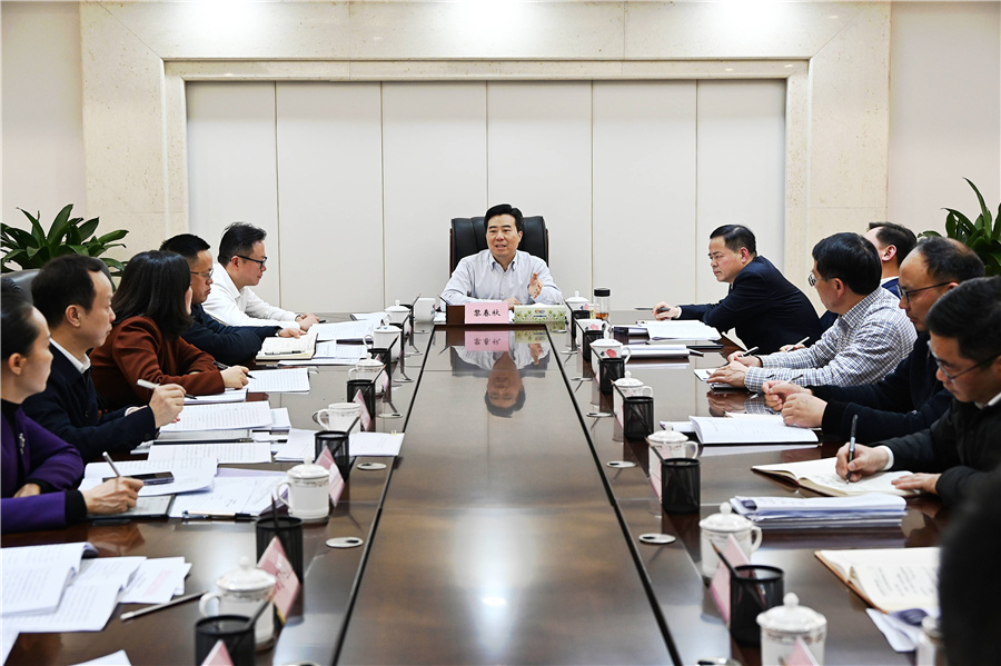 2月14日,市委副書記、市長黎春秋專題調(diào)度生態(tài)產(chǎn)品價值實(shí)現(xiàn)機(jī)制試點(diǎn)工作。(全媒體記者 張卓 攝)