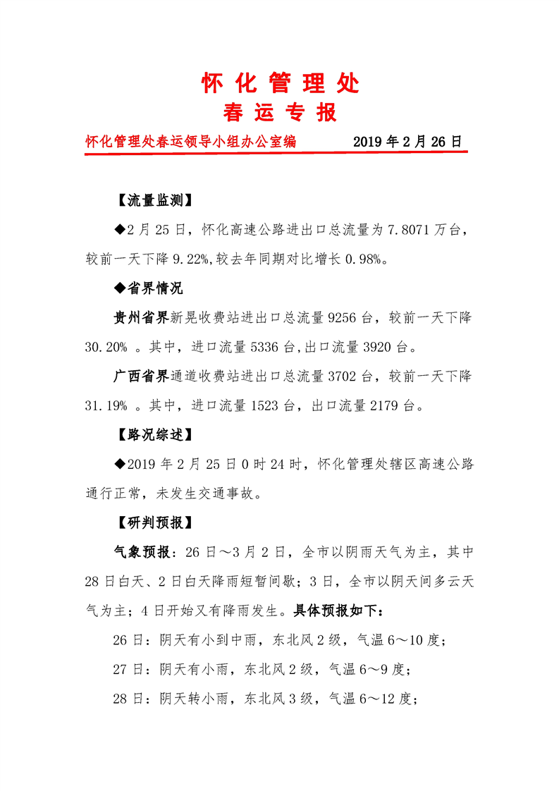 2019年懷化市高速公路春運(yùn)專報(bào)(第35期)