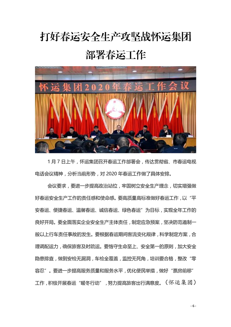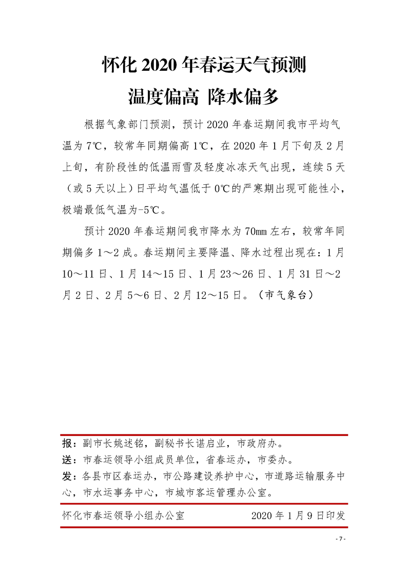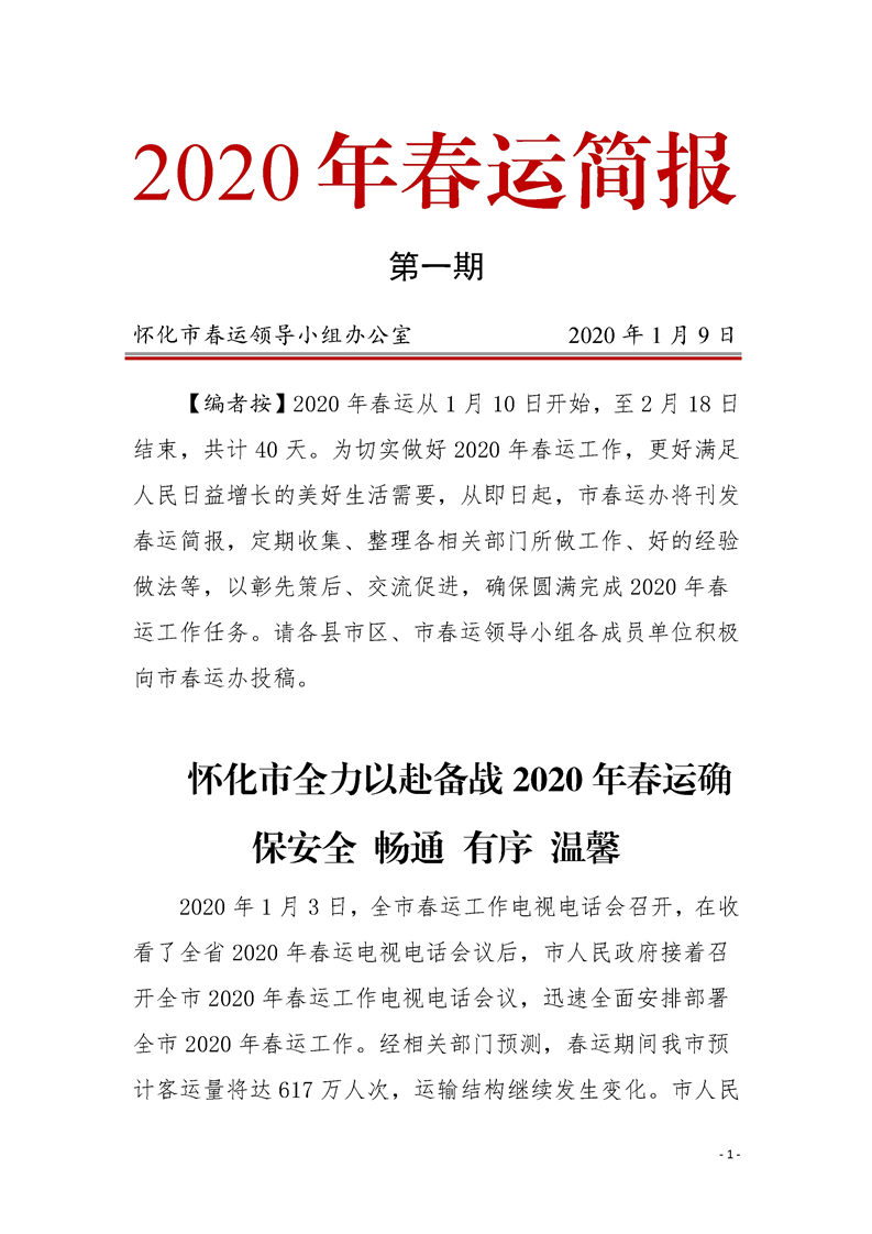 懷化市2020年春運(yùn)簡報(bào) 第一期