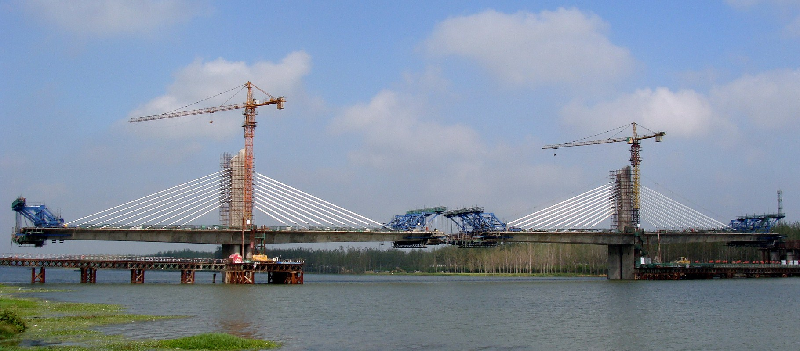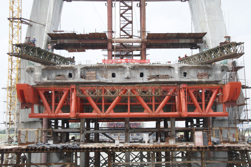 (徐明高速11標安徽路橋矮塔斜拉橋四榀桁架液壓走形掛籃)