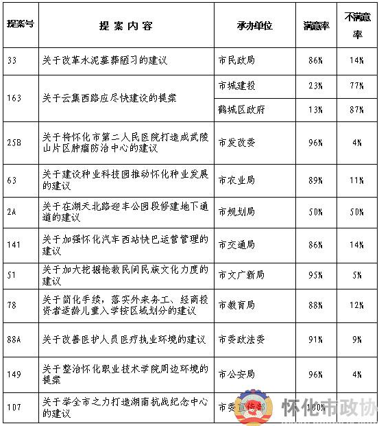 2014年12月17日,市政協(xié)四屆十次常委會會議對市政協(xié)四屆二次會議12件提案辦理工作進(jìn)行了評議和測評,測評結(jié)果如下: