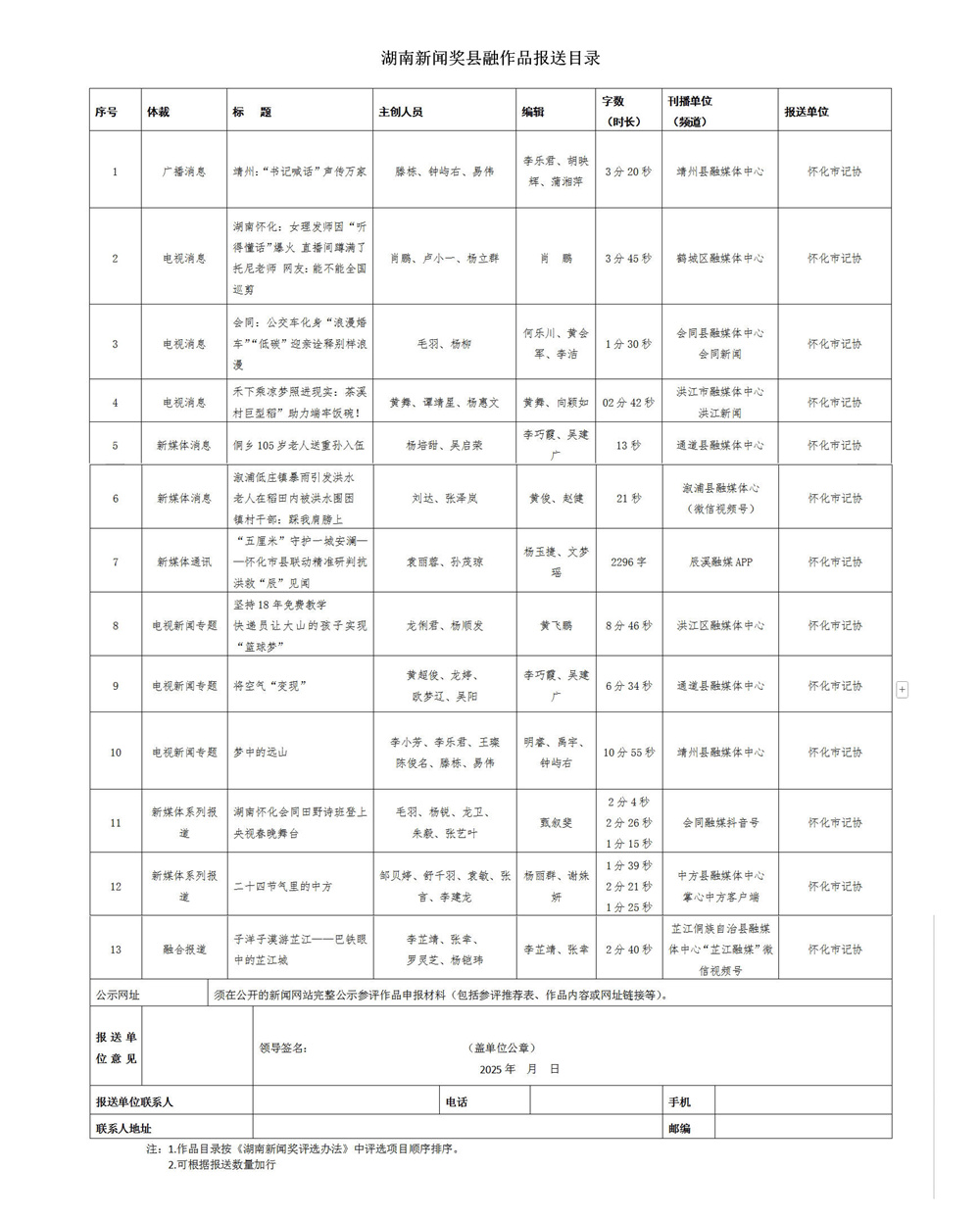 按照中共湖南省委宣傳部和湖南省新聞工作者協(xié)會(huì)《關(guān)于開(kāi)展2024年度湖南新聞獎(jiǎng)評(píng)選工作的通知》《湖南新聞獎(jiǎng)評(píng)選辦法》的要求,經(jīng)市委宣傳部和市新聞工作者協(xié)會(huì)初評(píng),擬推介36件作品參評(píng)2024年度湖南新聞獎(jiǎng),相關(guān)信息公示如下。