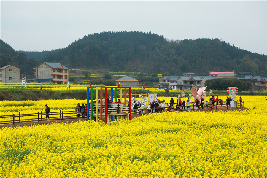3月16日,懷化市會(huì)同縣堡子鎮(zhèn)萬(wàn)余畝油菜花競(jìng)相開放,金浪翻涌的油菜花田與青瓦白墻的村落相映成趣,吸引眾多游人前來(lái)踏春賞花。據(jù)了解,當(dāng)?shù)貏?chuàng)新“稻田+”生態(tài)IP,將農(nóng)耕肌理轉(zhuǎn)化為沉浸式景觀,單日接待量突破1.2萬(wàn)人次,周邊民宿入住率達(dá)95%,菜籽油、生態(tài)米等農(nóng)產(chǎn)品銷售火爆。這場(chǎng)以花為媒的春日盛宴,正通過(guò)“農(nóng)旅+文旅+研學(xué)”的多維融合,推動(dòng)鄉(xiāng)村產(chǎn)業(yè)從單一糧油產(chǎn)區(qū)向復(fù)合型鄉(xiāng)村度假目的地轉(zhuǎn)型。