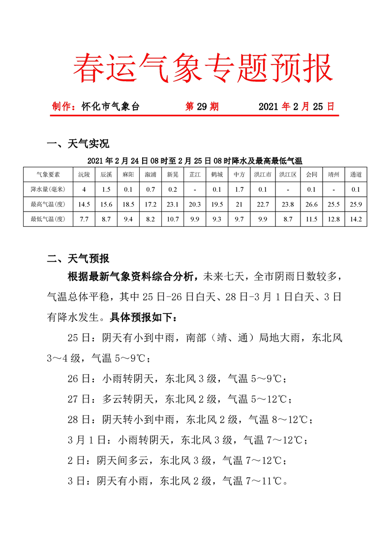 春運期間氣象專題第29期