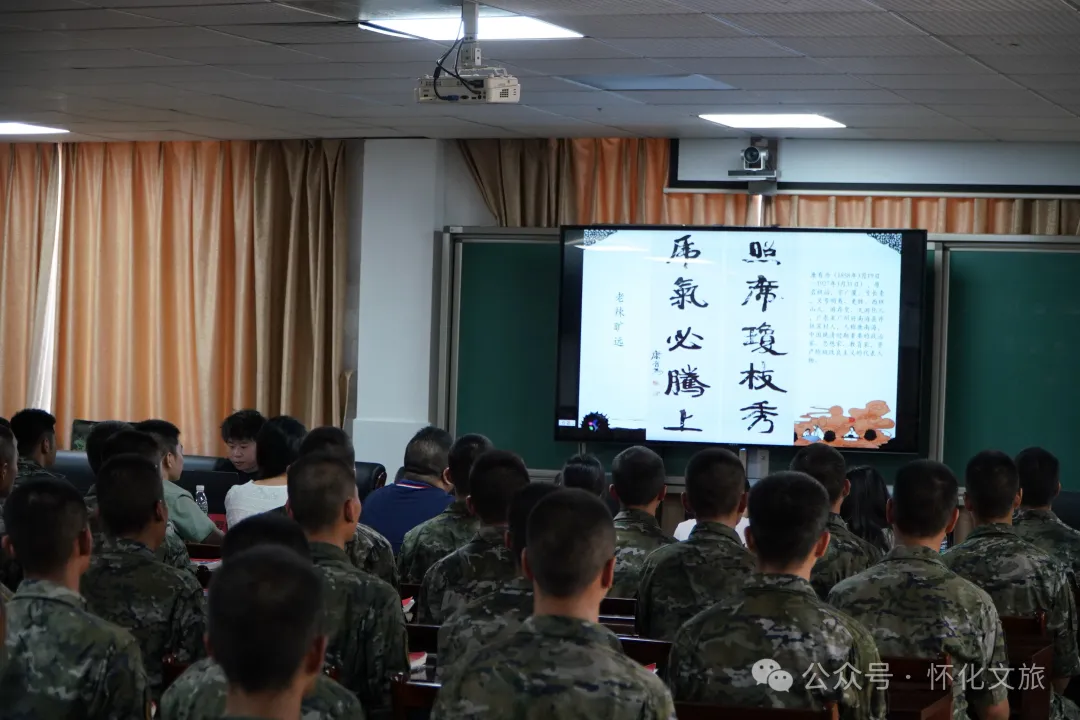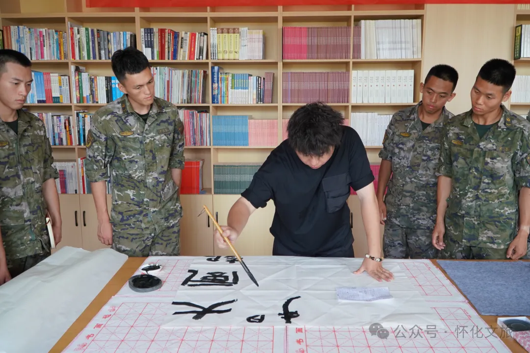 活動現(xiàn)場,懷化市圖書館邀請湖南省青年書法家協(xié)會理事、懷化市書法家協(xié)會副秘書長張鵬進行授課和交流,在介紹書法的基本知識后,張鵬帶領(lǐng)現(xiàn)場官兵們鑒賞書法作品,并與大家一起進行書法創(chuàng)作,提升大家的文藝創(chuàng)作能力。