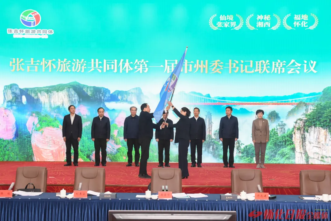 現(xiàn)場(chǎng),懷化市接過(guò)張吉懷旅游共同體會(huì)旗,成為新一屆輪值主席單位,未來(lái)將以張家界、湘西自治州、懷化的順序每年輪值。