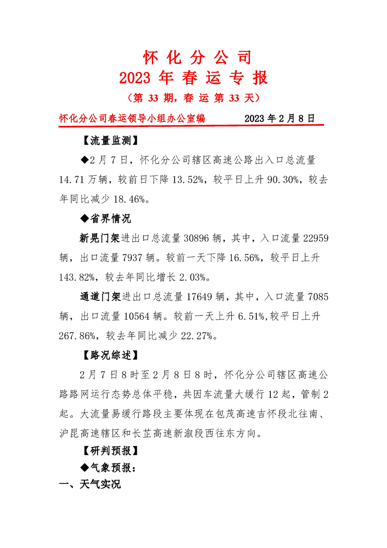 2023年懷化分公司春運(yùn)專報(bào)-第33期