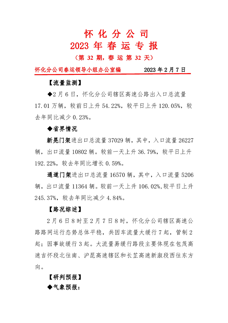 2023年懷化分公司春運(yùn)專報(bào)-第32期