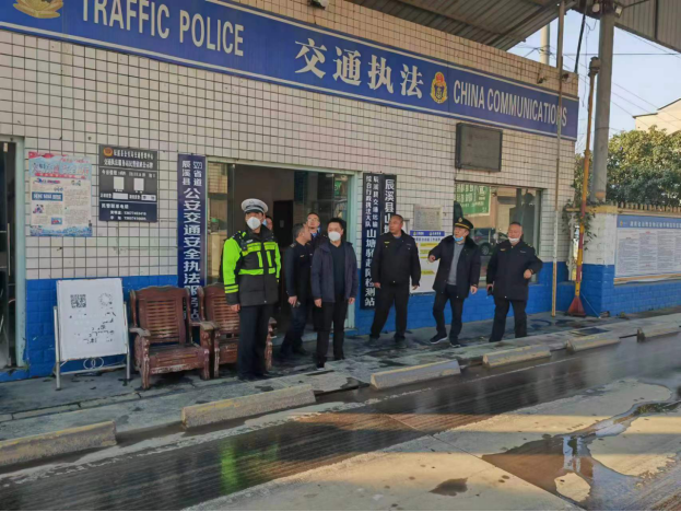 副縣長舒斌(左三)在山塘驛超限檢測站開展安全督查