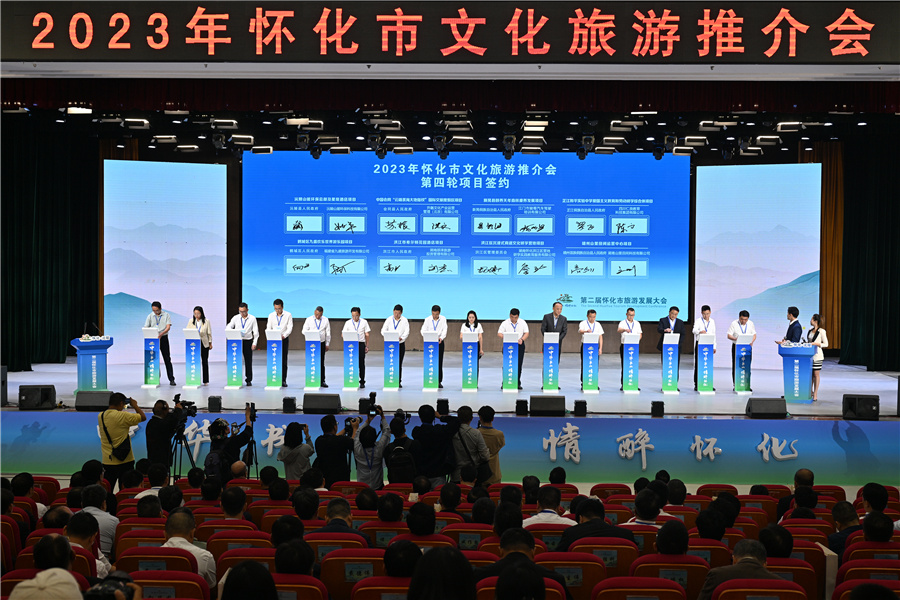 9月23日上午,2023年懷化市文化旅游推介大會在沅陵舉行。市委副書記、市長黎春秋出席并講話,市政協(xié)主席印宇鷹出席。副市長韓曉波作懷化文旅產業(yè)招商項目推介,13個縣(市、區(qū))共26個文旅項目進行了簽約,簽約金額約151.9億元。