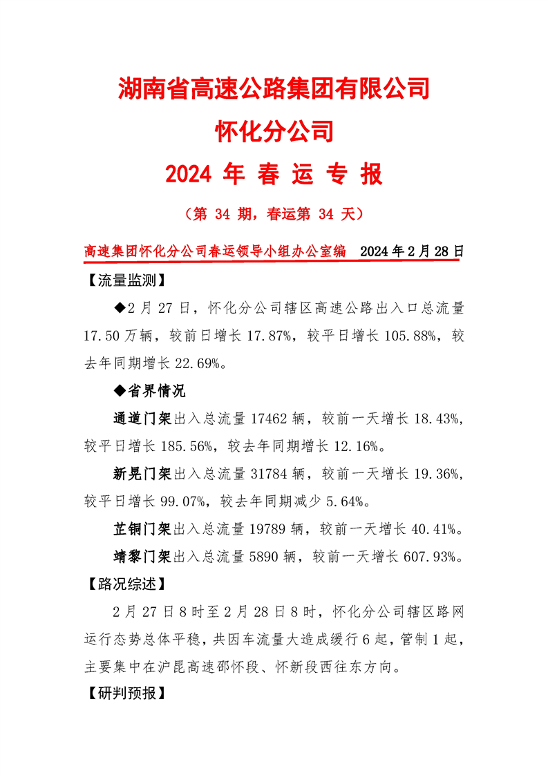 2024年懷化分公司春運(yùn)專報(bào)-第34期