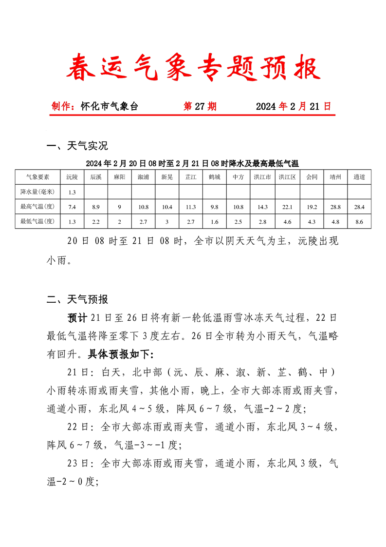 春運期間氣象專題預報2024022110-027
