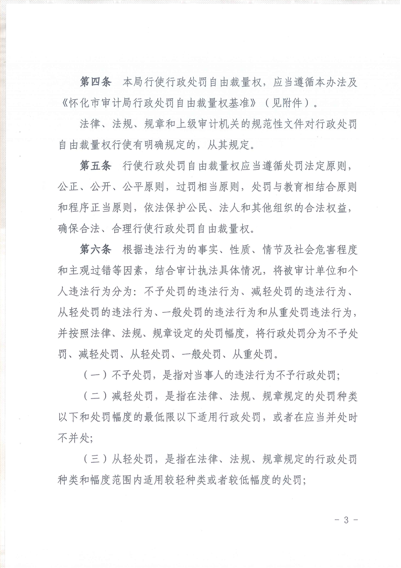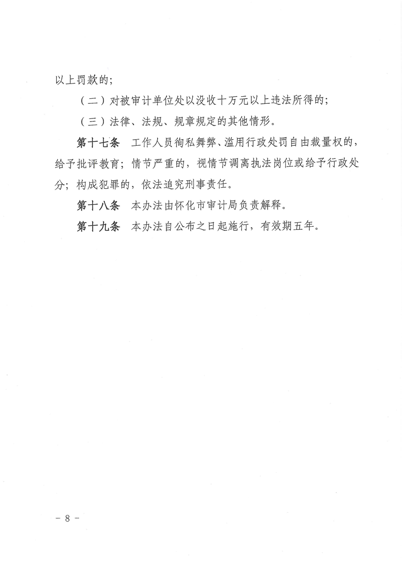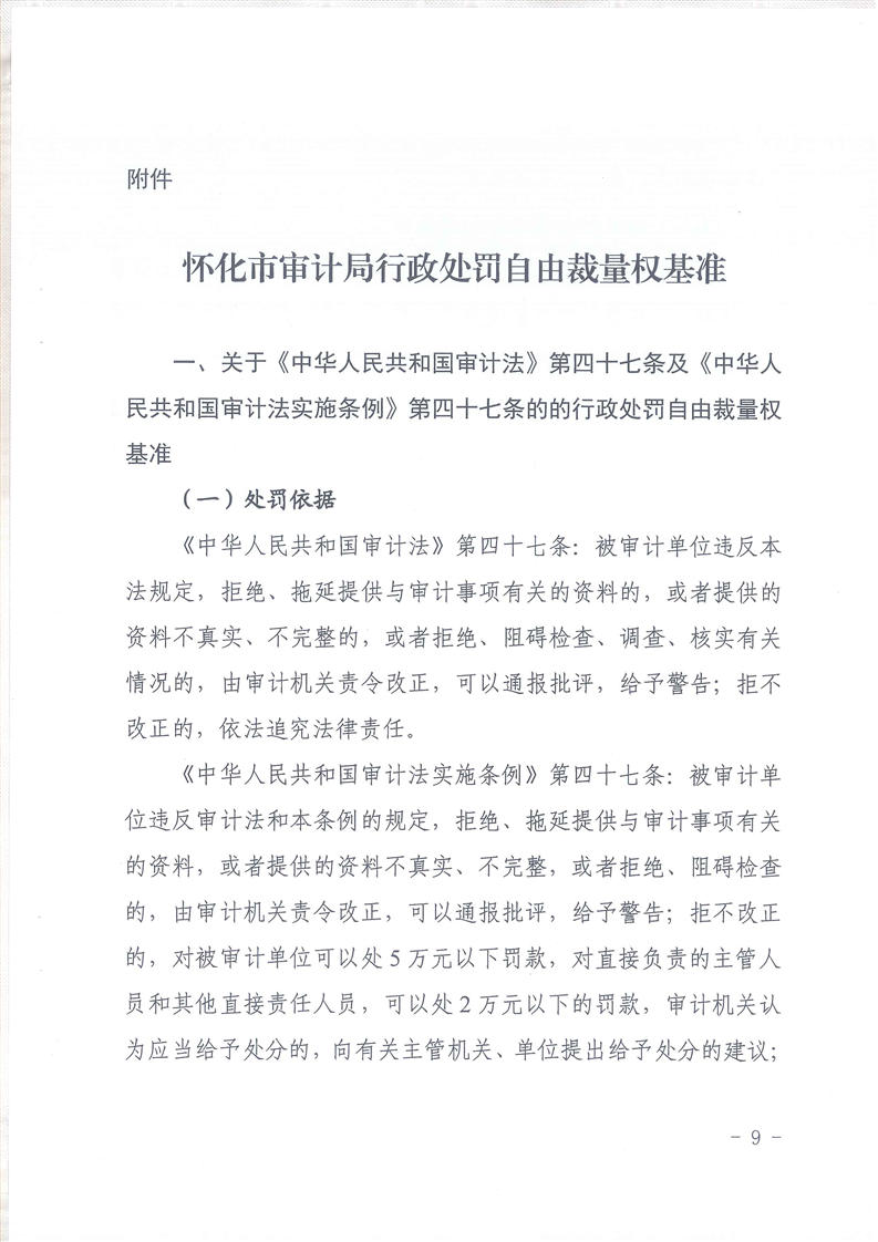 懷化市審計(jì)局關(guān)于印發(fā)《懷化市審計(jì)局規(guī)范行政處罰自由裁量權(quán)實(shí)施辦法》的通知