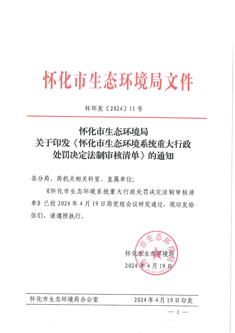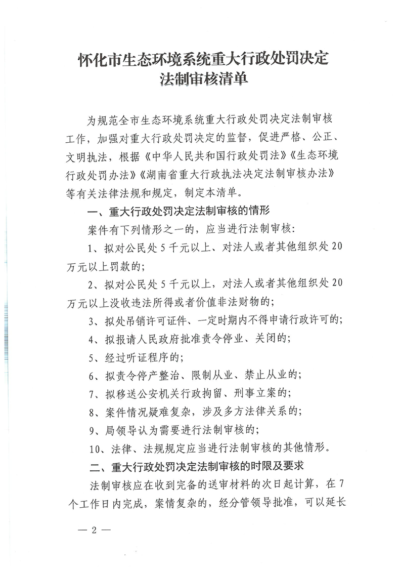 關(guān)于印發(fā)《懷化市生態(tài)環(huán)境系統(tǒng)重大行政處罰決定法制審核清單》的通知