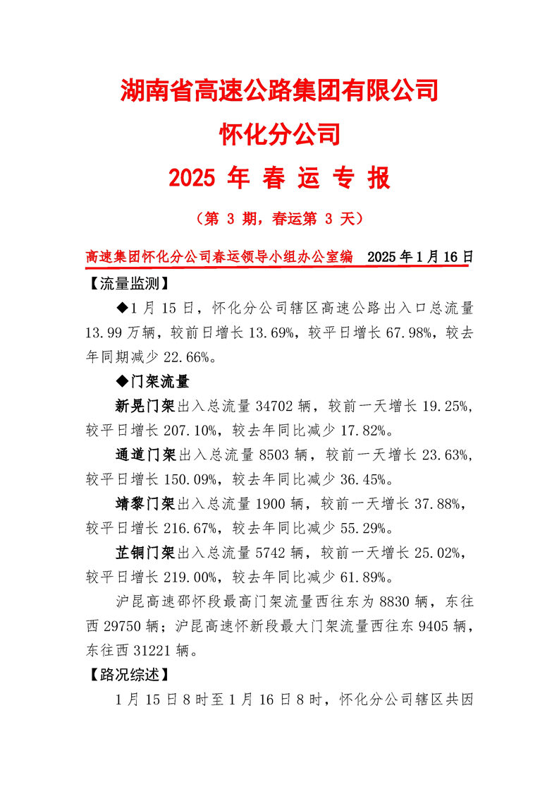 2025年懷化分公司春運專報-第3期