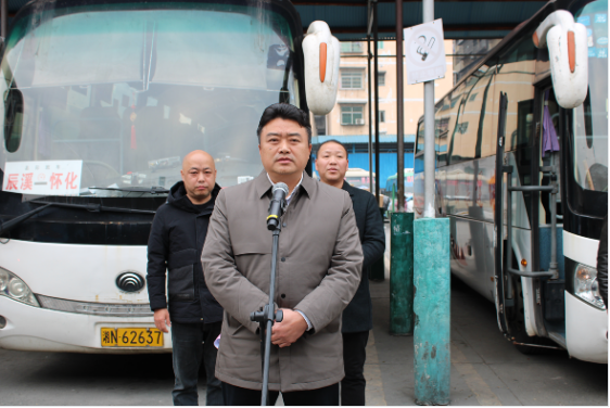 儀式伊始,縣交通運輸局副局長歐建興同志就春運期間各項工作的組織、協(xié)調、調度以及督查等關鍵環(huán)節(jié)進行了全面且深入的發(fā)言,為后續(xù)工作的有序開展明確了方向與重點。緊接著,駕駛員代表粟丁權同志,作為奮戰(zhàn)在春運一線的從業(yè)者,以質樸而堅定的話語表達了對安全駕駛、優(yōu)質服務的承諾;湘運公司經(jīng)理左有軍同志則從企業(yè)管理的宏觀視角,闡述了企業(yè)全力保障春運安全與服務質量的決心與舉措,彰顯了企業(yè)在春運工作中的擔當。隨后,辰溪縣縣委常委、政法委書記黃明畢同志莊重宣布2025年辰溪縣春運正式啟動。