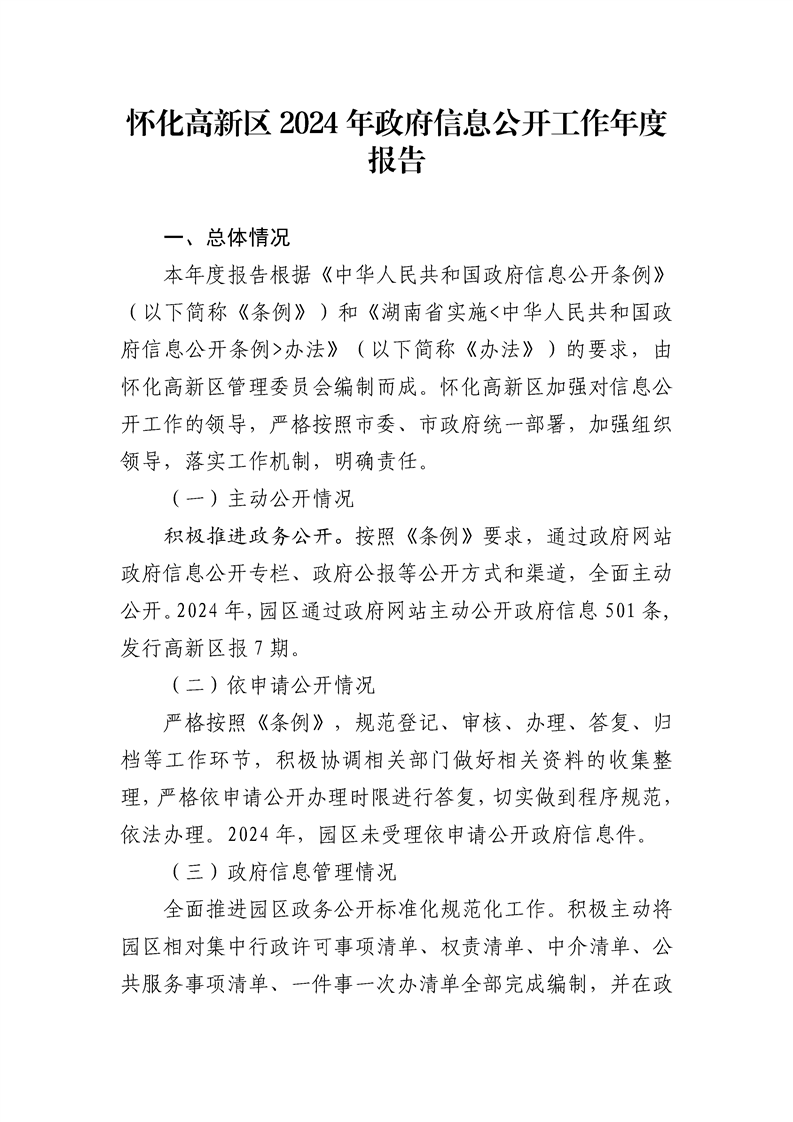 懷化高新區(qū)2024年政府信息公開工作年度報告